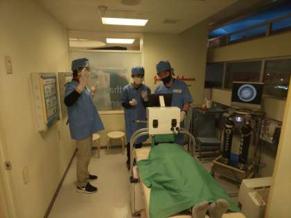 お笑いライブステージで芸を披露したり、眼科医体験で内視鏡の手術体験をしたり、楽しんだり追究したりと、キャリア体験学習を深めている子どもたちです。