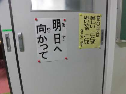 校長からは、「1年間の締めくくりとなる3日間または4日間を、一日一日を大切に、一歩一歩進んでいきましょう。そして、次の学年、次の学校へ向けての準備を行いましょう。」との話をしました。今日、子どもたちに送った言葉は「明日へ向かって」です。
