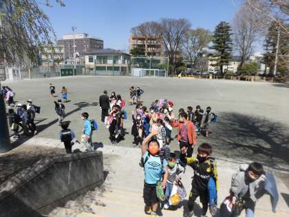 1年生から5年生までは今日が最終登校日です。1年間の学校生活を締めくくり、進級への期待を抱きながら、「ありがとうございました。」とあいさつをして下校する姿が見られました。