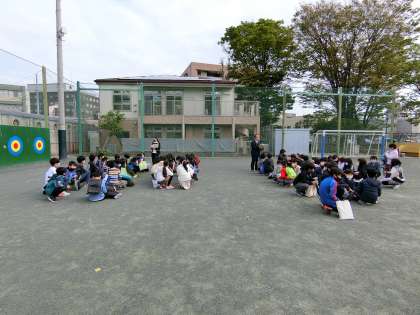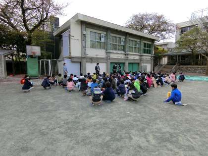始業式に続いて校庭で、学年・学級ごとに担任との顔合わせと配布物の配布、明日からの予定などについて確認しました。20分程の時間でしたが、子どもたち一人一人の表情には、ワクワク感とともに、自分の力を発揮して「頑張るぞ!」といった気持ちがあふれていました。とても頼もしく思いました。