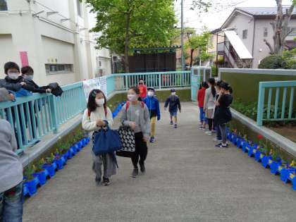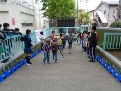 また、校舎内でも、休み時間や廊下を行き交う際に、あいさつが積極的に行われています。あいさつを通して、活気のある学校生活となっています。