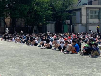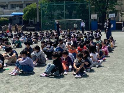 その後の、校長先生のお話や担当の先生のお話も、最後までしっかりと聞くことができました。「自分たちの命を自分たちで守る」そのために、毎月必ず避難訓練を行っていきます。いつでも100点の姿で行える1年生を目指します!