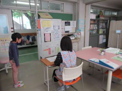 今日の1時間目と2時間目に、保健室で検査を行いました。検査の仕方についての説明を受け、順番に保健室で検査を行いました。