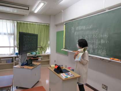 *写真は、3人の担任がそれぞれの授業を行い、子どもたちとのやり取りを行っているところです。