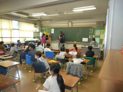 前向きで席についたり接触しなかったりと制限はありましたが、それぞれの教室では、楽しそうに活動していました。
