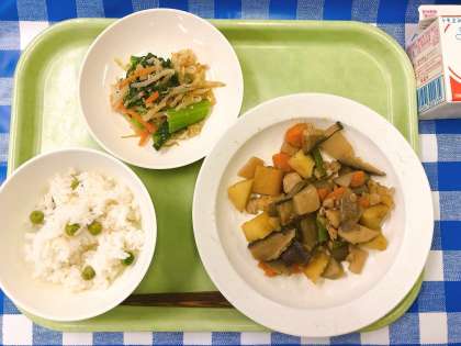 今日も聖火リレー給食で、福岡の郷土料理である「筑前煮」をつくりました。