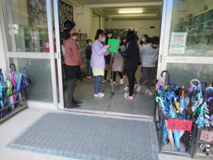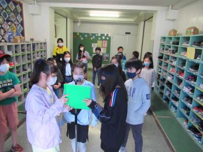 放送は北校舎東昇降口から流し、各教室では自分の席で放送を聴き3択クイズに回答しました。