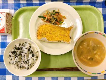呉汁とは、大豆を柔らかくしてすりつぶしたものを入れた汁物です。すりつぶしてあるので、大豆が入っていることには、なかなか気付きません。しかし、大豆の栄養はしっかり入っています。今日も栄養満点の給食を、好き嫌いせず食べてください。