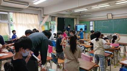 2組:とじこめた空気をおすとどうなるのか?予想を立てて実験に取り組みました。