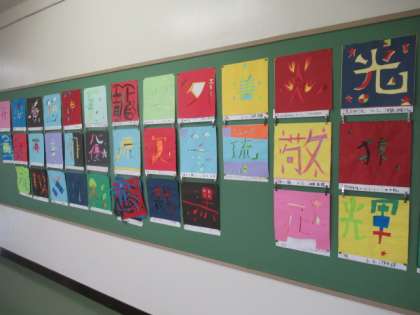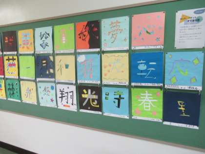 一文字言葉を選んで、その言葉のイメージを自分で考え、画用紙を切って、重ねて、表しました。
