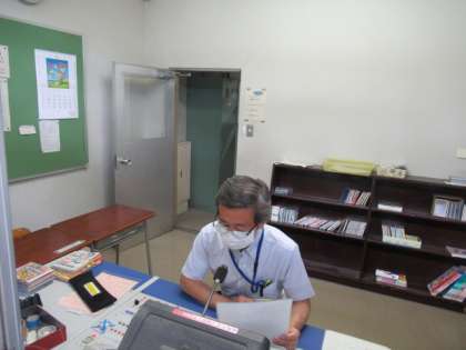全校朝会を校内放送を使って行いました。