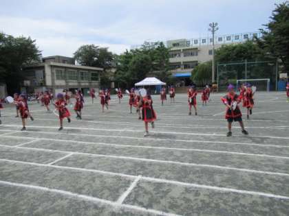 続いて、各学年の「団体演技(表現運動)」を発表し、参観し合いました。
