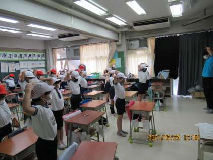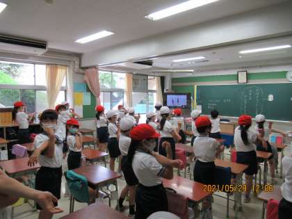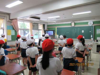 ●写真は、教室のZoomを通した映像を視聴しながら閉会式にさんかする子どもたちの様子です。1年生・2年生・3年生・4年生のみなさんは、代表として校庭での閉会式に参加する5年生と6年生と同じ気持ちで、共にに閉会式に参加しました。