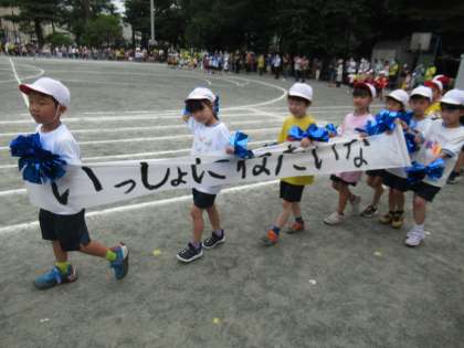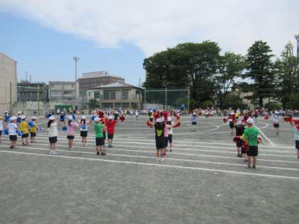 決められた間隔をあけて並ぶことや隊形移動は、簡単なようですが広い校庭ではとても難しいことです。何度も練習して、できるようになった姿を見て、担任一同感動しています。