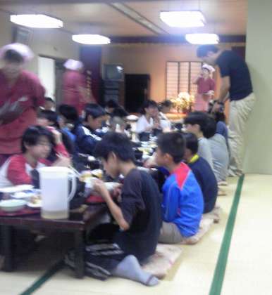 待ちに待った夕食です。すき焼き風でみんな食欲旺盛です。夕食の後はきもだめしですが、明日の朝、報告させていただきます。今日の日光報告は以上です。