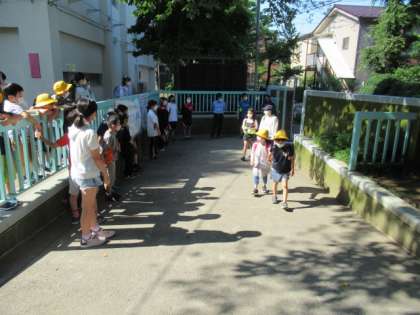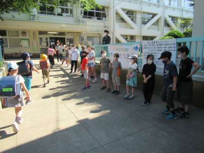 知っている中学生もいることから、4年生もとても嬉しそうに声かけ活動に取り組み、互いに笑顔があふれていました。