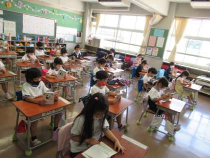 音楽朝会の後の感想では、「覚えたよ!」「声を出してもっと歌いたいな!」など、笹原小学校が大切にしている歌を学ぶことができて、嬉しそうな1年生でした。