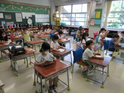 6/10 1年 音楽朝会で“ポプラの歌”を学びました!