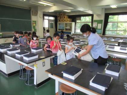 今回の配布で、本校では全児童に一人1台の学習用タブレット端末の配布が完了しました。今後は、発達段階を考慮して、家庭で、学校で、効果的な活用ができるよう取り組んでいきます。