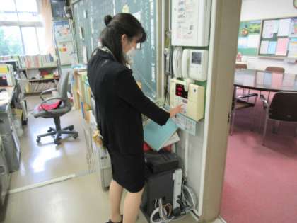 学校が予期しない時間帯に不審者が校舎内に侵入したことを受けて、第1目撃者からの通報が職員室にあり、校内緊急放送を使って気付かれないよう、そして刺激しないように児童・教職員に連絡し、各教室等で安全確保をしました。子どもたちは、放送と担任等の指示を聴き、落ち着いて避難行動(身の安全確保)をとることができました。