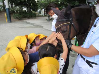最後に、お馬さんも走る練習や演技の練習を何度も積み重ねてできるようになるので、みなさんも最初からできないと思わずに何事にも一生懸命に取り組んでほしいとお話をいただきました。