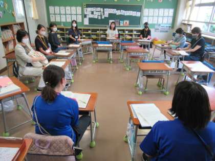 1年担任と小1サポーターの皆様との情報交換・情報共有を行い、7月の活動計画・配置計画について話し合いました。