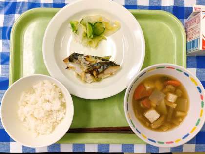 今日は聖火リレー給食で、神奈川県にちなんだ料理です。けんちん汁は、いまは全国で食べられているおなじみの料理ですが、神奈川県鎌倉市の建長寺で生まれたという説があります。建長寺のおぼうさんが作った「建長汁」がなまって、「けんちん汁」と言われるようになったそうです。お寺では「精進料理」と言って、肉や魚をつかわないので、たくさんの野菜と、豆腐やいもなどを入れて作ります。