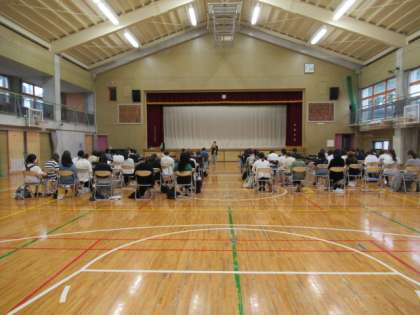 今日の午後、体育館において、2時15分から5年生の保護者の皆様に、3時15分から6年生の保護者の皆様にお集まりいただき、1学期末の保護者会を開きました。