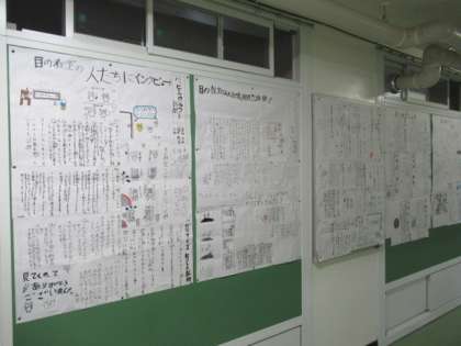 今回、「目の教室について知ろう!」の学習を通して、考えたこと・感じたことなど・分かったことなどをを掲示物にまとめ、発表しています。