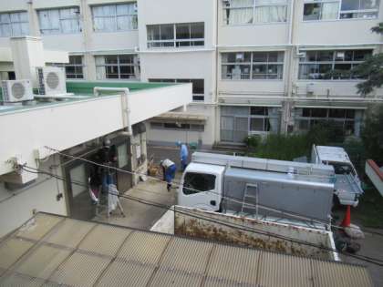 今日から、給食室の改修工事が本格的に始まりました。今回の工事は、児童数増加に伴う学級数の増加が見込まれるため、給食室の厨房機器の増設やサイズアップのために行うものです。また、今回の改修工事に合わせて、すまいるルーム準備室の改修工事・給食調理員控室改修工事・体育館倉庫の一部改修工事、そして、放送室隣室の更衣室化工事を行います。