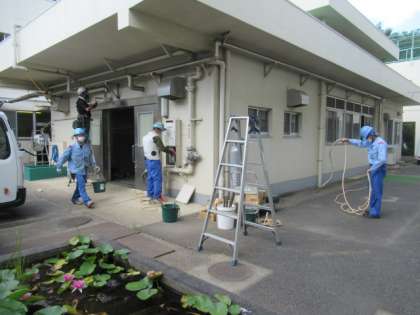 給食室の改修工事は10月下旬までの工期で行い、その他の工事は8月下旬までの工期で進めます。