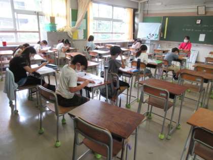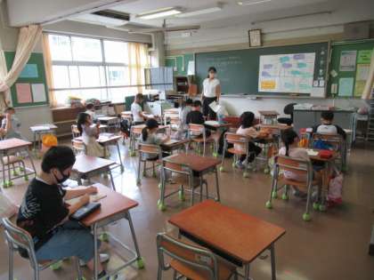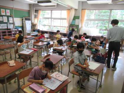 学習教室も今日が2日目です。水泳教室が実施されている3年生と4年生以外の学年の子どもたちが、自分の教室で夏休みの学習に取り組んでいます。