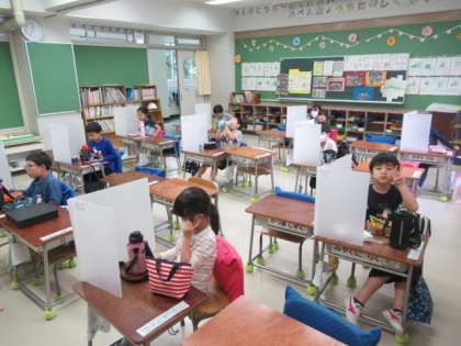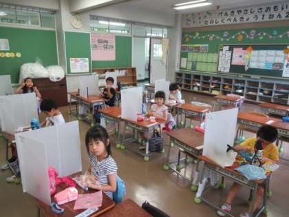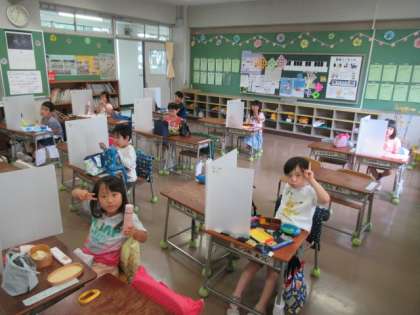 そしてお弁当の時間になりました。手を洗い、パーテーションを準備し、みんなで「いただきます!」をして、お家で用意していただいたお弁当を笑顔いっぱい食べていました。