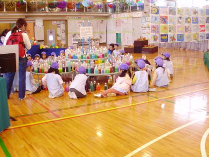 11月21日(金)桜丘幼稚園の園児たちが見学に来ました。小学生の作品を見てとても喜んでいました。小学生のお兄さんお姉さんの作品のよさを見つけている姿をうれしく思いました。