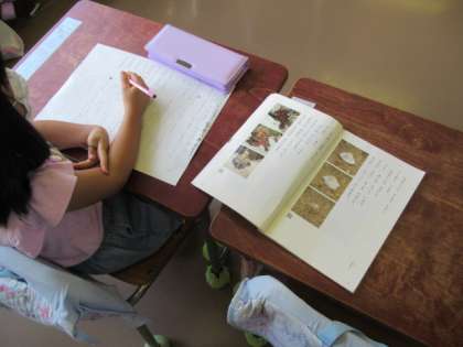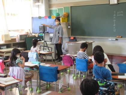今日登場した生き物は「たこ」です。たこが住む場所・たこのからだのこと・たこのかくれかたなど、順番に読み取っていきました。配布されたワークシートにまとめながら、たこについて、楽しく、そして詳しく学習しています。