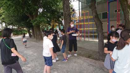 天気がよいので、校庭に出てグループでスプーンを使って音の伝わり方を確かめました。