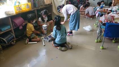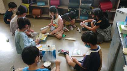 身近にある空き箱、ゼリーカップ、サランラップの芯など事前に集めてもらいました。