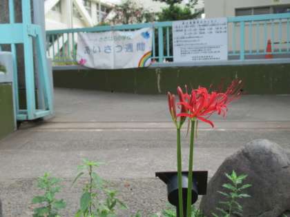 正門前の彼岸花も花が開き出しました。観察しながら登校する子どもたちも、その変化に気付いているようです。