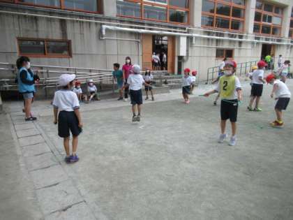 中休みには全校で一斉に、短縄跳びに取り組んでいます。運動委員会のみなさんが1年生と2年生のアドバイス役として応援し、3年生以上は友達や担任の先生と一緒に、いろいろな跳び方に挑戦したり、教え合ったり、見合ったりして、楽しく過ごしています。