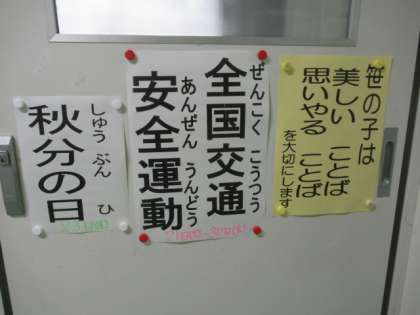 ○今週のキーワードとして「秋の全国交通安全運動週間」を示し、21日(火)から30日(木)までの10日間の取組について紹介し、信号機がある横断歩道等での横断の仕方・自転車の安全な乗り方・通学路を守って登下校すること・特に夕暮れ時の交通安全には気を付けること、などについて話をしました。