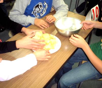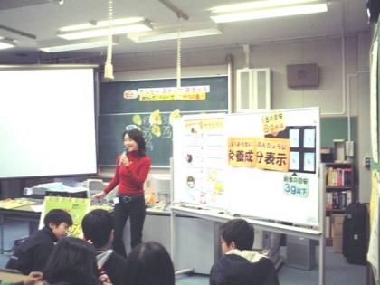 11月27日、食品会社の方にゲストティーチャーとしてお越しいただき、身近なスナック菓子について学びました。ポテトチップス適量当てゲーム、食育ビデオ観賞「楽しいおやつの食べ方」、パッケージ表示の見方を覚えよう、油と塩のプログラム等のプログラムが実施されました。子供たちはとても楽しんで学習していました。学んだことをこれからの生活に生かしてほしいと思います。