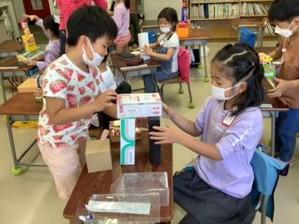 今後は、子どもたちの箱を使ってかたちの違いについて学習していきます。子どもたちにもぜひ話を聞いてみて下さい!