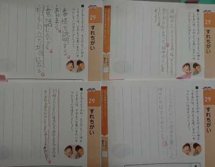 〇「すれちがい」の話を通して、すれちがう場面の解決の方法を考えました。2人の登場人物の立場に立ち、「自分だったらどんな気持ちになるのか」「どうすればよかったのか」を考えて話合い、同じ立場の人や違う立場の人と意見を交流して学習を進めました。「相手の考えをしっかりと聞いてあげればよかった。」「私の気持ちも素直に言えばよかった。」などの意見が出てきました。最後に、お互いが分かり合うためには「自分の気持ちを伝えつつ、相手の気持ちも尊重することが大切である。」と振り返りました。これからも、学校生活を通して、自分も相手の気持ちも尊重しながら互いの気持ちを考えて行動しようとする心情を育んでほしいと思います。