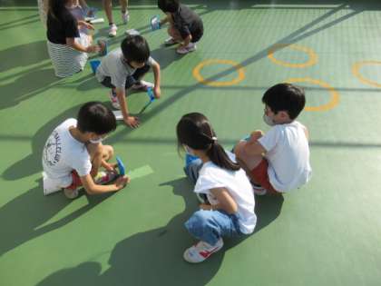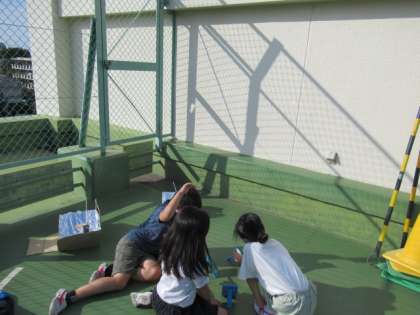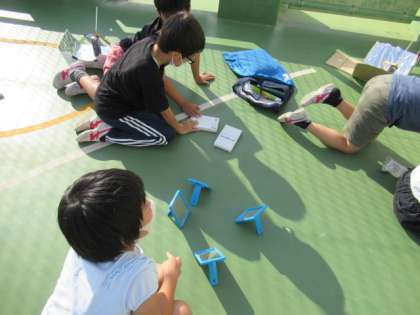 理科「光を調べよう」の学習で、光の反射を使って、思ったところに光を当てる、「光のリレー」をしました。子どもたちは、「反射する角度を調整するといいかも。」「太陽に向かって初めに一枚を立てるとうまくいく。」など、試行錯誤をしながら実験に取り組みました。実験後には、「うまくいってうれしい!」「何度も挑戦してよかった!」など、実験の成功を喜ぶ声や自分たちの取組を振り返る声が多く聞かれました。