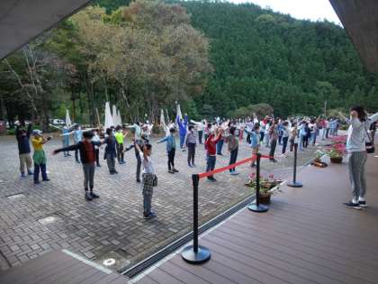 みんなで朝のあいさつを交わし、ラジオ体操をしました。そして、代表のみなさんの言葉には、大きな拍手が送られました。