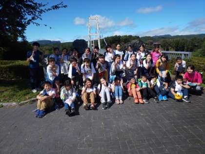 ふれあい橋を渡り、学級ごとに集合写真を撮りました。