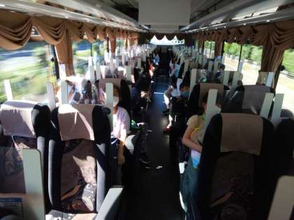 1時43分、上里サービスエリアで休憩を取り、出発しました。バス内ではDVDを視聴して楽しく過ごしています。