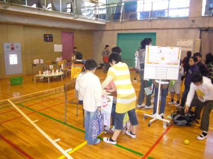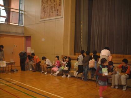 12月6日土曜日は、笹の子まつりでした。冬晴れの穏やかな天候に恵まれ、子供たちは一日を楽しみました。開会式はテレビ放送で行いました。写真は、スタジオで写したテレビ放送の様子、お店(あきかんたおし、おばけやしき)の様子です。