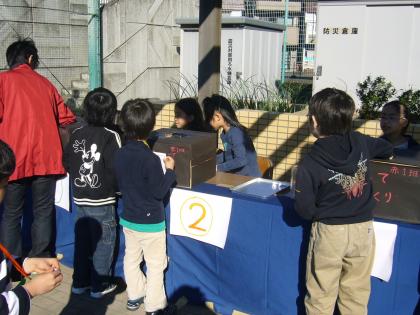 お店は、運動場に3つできました。晴天でかぜもなかったので、計画通りできました。