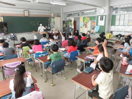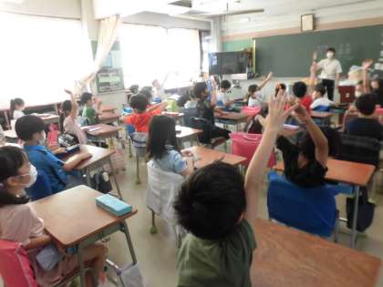 質問をしたり、メモを取ったりしている児童もいて、最後は元気に「よろしくお願いします。」とあいさつが出来ました。